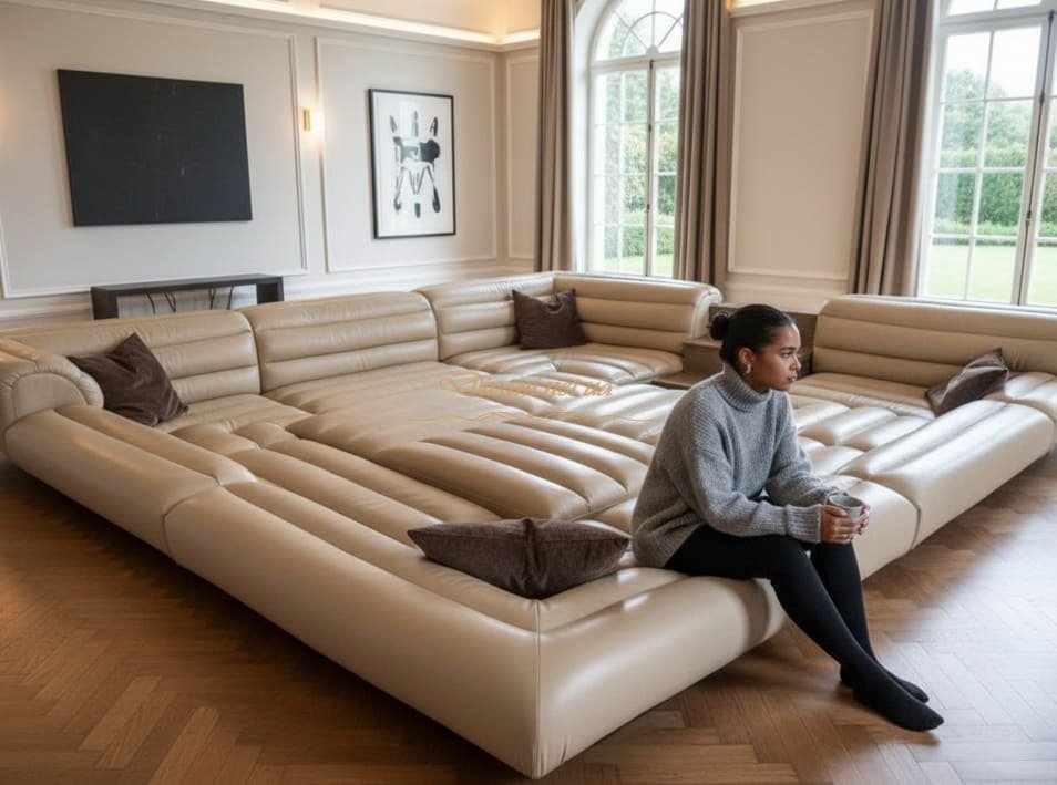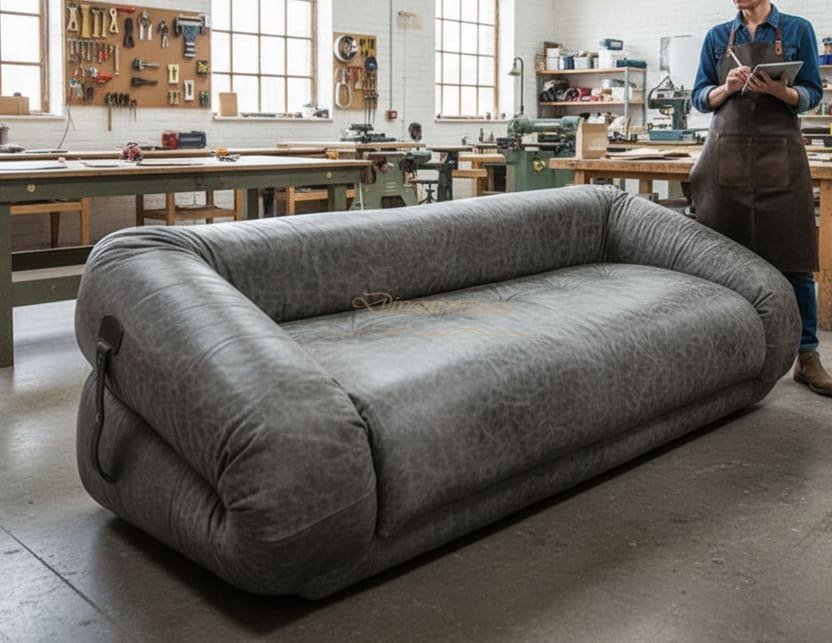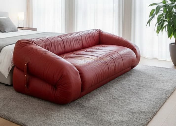 - Спальня: В просторных спальнях бескаркасный диван может стать дополнением к кровати, создавая уютный уголок для утреннего кофе или вечернего чтения.