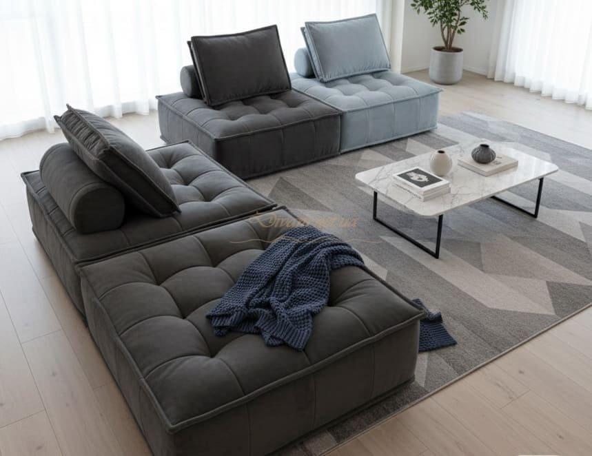 - Безграничные возможности трансформации: Модульная система позволяет адаптировать диван под любые нужды и размеры помещения. Хотите угловой диван? Пожалуйста! Нужен прямой диван с дополнительным пуфом? Легко! Можно даже создать полноценное спальное место.